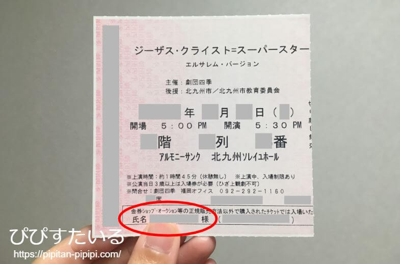 転売目的の場合はもちろん、劇団四季の紙チケットの場合は「記名式」のものもあるため、そちらも規約に抵触しそうです。