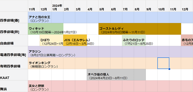 - 劇団四季の公演スケジュール一覧をおおまかに確認したい